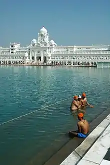 - 🌍 Amrit Sarovar. The giant pool of water that surrounds and reflects the Golden Temple. Sections (marked off by ropes) are set aside for (male) pilgrims wishing to bathe.
