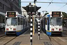 Amstelveen's city centre is navigable on foot, with tram line 5 connecting Amsterdam Zuid station with the Stadshart. Tram line 25 runs south from Amsterdam Zuid Station to Westwijk in Amstelveen overlapping tram line 5 between the Amsterdam Zuid Station and Oranjebaan stops but bypassing Stadshart. Metro line 51 no longer serves Amstelveen south of Amsterdam Zuid railway station; it was replaced by tram line 25.