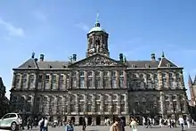 - π Royal Palace (Koninklijk Paleis), Dam (tram 1, 2, 5, 13 or 17 to Dam), β +31 20 620-4060. Daily 12:00β17:00. The Royal Palace is one of the three official palaces of the Netherlands. It is at the disposal of King Willem-Alexander by the Act of Parliament. It was built in 1651 as the city hall of Amsterdam, in a period known as the Dutch Golden Age. Many school children learn that because of the swampy soil, it was built on no less than 13,569 wooden poles. In 1795, the French Empire of Napoleon Bonaparte invaded the Netherlands, and his brother Louis Napoleon became the first King of Holland in 1806. He acquired the city hall in that year and turned it into a royal palace. It was restored to the original owners when Prince William VI returned to the Netherlands in 1812, but when he was crowned as King William I, he decided that Amsterdam should be the official capital and acquired the city hall once again as a royal palace. This is still a delicate subject among the locals, some of whom would like to see the palace returned to Amsterdam. It was completely renovated in 2009. It is mainly used for diplomatic receptions and to welcome visiting heads of state, not as a royal residence. β¬12.50.