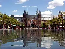 • 🌍 Rijksmuseum, Museumstraat 1 (Tram 2, 5 or 12 to Rijksmuseum), ☏ +31 20 6747 000, . Daily 09:00-17:00. The largest and most prestigious museum for art and history in the Netherlands: works by Vermeer, Rembrandt, and other Dutch masters. Its garden has a curious collection of architecture and has free entrance during museum opening times. Recommend to get there early to avoid long queues and crowds, then head first for the second floor to see the Rembrandt classics and others such as Avercamp's Winter Landscape with Skaters. €20/adult, €19/adult online, €10/European Youth Card, children free, no student discounts.