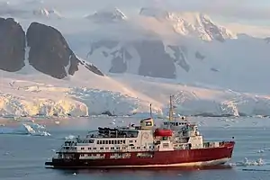 Ship is the most common method of visiting the Antarctic, with a sailing season Nov-Feb. The vessels are usually ice-strengthened rather than icebreakers; the latter are stronger but round-bottomed, so they heave about more in the massive waves of Drake Passage. Most itineraries are to the Antarctic peninsula and nearby Antarctic islands, and they often also take in more northerly islands such as South Georgia and the Falklands.