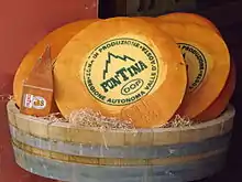 Lots of local specialities - look for the word "Valdostana" or "Valdôtaine" in the names of dishes. Carbonade is ground beef meat roasted in red wine. Fontina cheese is made locally. Tegole are sweet thin biscuits.