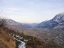Aosta (French: Aoste) is the capital of Italian autonomous region of Aosta Valley. The town is in a small valley with houses going up the slopes of the surrounding mountains.