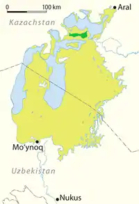 The Aral Sea, what once was the fourth largest inland body of water in the world, and now more aptly dubbed Aralkum ("Aral Sands"), is in Central Asia, divided between Northern Uzbekistan (Qaraqalpakistan) and Southern Kazakhstan.