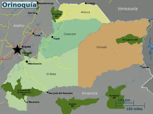 El Meta is a department of the Orinoquía region of Colombia. By far the main attraction here are the haciendas for rent around Villavicencio, which are wildly and rightly popular with Bogotanos looking to escape their high-altitude, colder climate for a weekend or week. The rentals are cheap, and the houses/farms are beautiful, generally with pools in the courtyards. A great escape! This region is largely unknown to international travelers, and most guidebooks to Colombia don't even mention it.