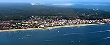 Arcachon is a popular bathing location on the Atlantic coast 55 km (34 mi) south-west of Bordeaux in the Landes forest.