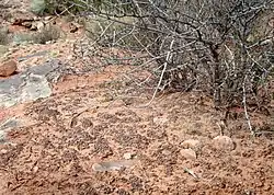 Potholes are naturally occurring basins or pools in sandstone that collect rainwater and wind-blown sediment. These potholes harbor organisms that are able to survive long periods of dehydration, and also serve as a breeding ground for many desert amphibians and insects. Both of these communities are very vulnerable to human impacts.