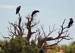 Although Arches National Park is not a birding hot spot, 273 species of birds have been spotted in the park. Species such as Spotted Towhee and Canyon Wren can be found near water in spring and summer. In drier grasslands and pinyon-juniper woodlands of the park, Say's Phoebe, Black-throated Sparrow, Western Meadowlark, Juniper Titmouse, Pinyon and Scrub Jays, and Lucy's and Black-throated Gray Warblers are present. Common Raven will likely be seen by nearly all visitors, and can be spotted throughout the park. Cooper's Hawk and Turkey Vulture are among the birds of prey that glide above Arches' desert landscape.