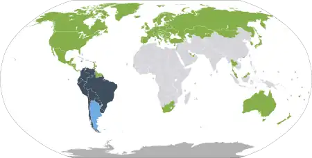 The Falkland Islands, a United Kingdom Overseas Territory, are claimed by Argentina as the Islas Malvinas, but as the archipelago is not under de facto Argentine rule, they are covered in their own article. That should not be construed as expressing approval or disapproval of either side's claims. |