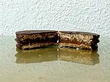 The most "Argentine" pastry is the alfajor. This is a round multilayer cookie filled with dulce de leche. The factory-made variants are available in any supermarket and kiosk, and those usually are covered with chocolate or sugar. There are also a great number of "home made" variants, the most famous are alfajores cordobeses from Córdoba covered with ground coconuts.