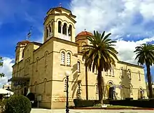 The most activity goes around the town centre, which is the two big squares of Saint Peter, with the church on it and Dimokratias, with the flea market every Wednesday and Saturday. Another known part of the centre is the pedestrian roads ("pezodromoi" as called in Greek), which are the streets of Eleftheriou Venizelou, Panagi Tsaldari and Mihail Stamou.