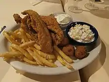 Arkansas' food resembles that of its southern neighbors. Much truly authentic and worthwhile southern cuisine is made in private homes, cookouts, or church functions, rather than actual restaurants. One exception is barbecue, particularly pork barbecue, which is widespread, and available in restaurants, roadside stands, and even trucks. Another regional staple is fried catfish, often it is served with hushpuppies, cole slaw, and french fries or a baked potato. Catfish is especially prevalent in the lowland and Delta regions of the south and east.