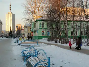 - 🌍 Wooden Arkhangelsk. Wooden buildings are being gradually moved out of the city, but still Arkhangelsk contains many sections of such 1- to 2-floor houses. Some of them look beautiful, others are more like slums, but anyway wooden Arkhangelsk is a certain point of interest and worth a walking visit. Even some sidewalks are still made of wood, crunching under feet. Most beautiful and well-maintained wooden buildings are concentrated at Chumbarova-Luchinskogo street (улица Чумбарова-Лучинского) which is planned as a "museum street" by the city authorities.