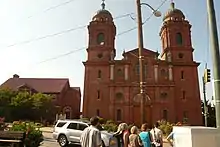 - Mt. Zion Baptist Church, 47 Eagle St. A redbrick late Victorian Gothic church featuring a tin-shingled roof where three towers are topped by ornamental sheet-metal finials. A large number of Art Glass windows ornament the towers and walls. Built in 1919.