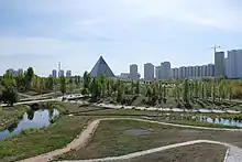 - 🌍 Lovers' park (Ғашықтар саябағы). Between Khan Shatyr and the KazMunayGas building with good views to both and also to the Bayterek tower.