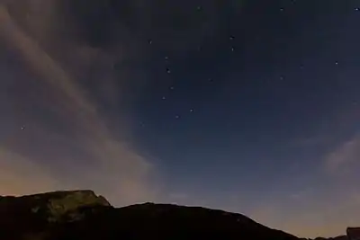 The Ursa Major constellation, including the Big Dipper, can be seen in the sky in the Northern Hemisphere