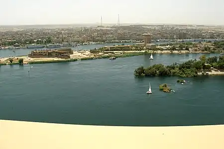 - 🌍 Movenpick Resort (Northern end of Elephantine Island), ☏ +20 97 230 34 55, resort.aswan@moevenpick.com. Resort hotel. Rates from US$160 per room per night. 7 night package with meals and massage: US$1,064 (summer) to US$1,414 (winter).