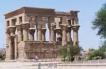- 🌍 Trajan's Kiosk. A hypaethral temple on Agilkia Island in Old Aswan dam reservoir. One of the largest Ancient Egyptian monuments standing today, it is conventionally attributed to the Roman emperor Trajan, who gave it its current decorations, though some experts think the structure may be older, possibly dating to the time of Augustus.