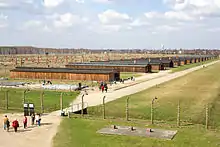 • 🌍 Auschwitz II-Birkenau. The second camp, built after Operation Barbarossa to accommodate the influx of captured Slavs from the Soviet Union, and is around 3 km from Auschwitz I. You can still see the entrance gate, the railway track and ramp and a single row of preserved barracks; the rest were destroyed. Many of the fences, chimneys and watchtowers are still standing, which illustrate the camp's bewildering size. You can also see the buildings where incoming prisoners were shaved and given their "new" clothing, the ruins of the four crematoria and gas chamber complexes, ponds where the ashes of thousands of people were dumped without ceremony, and a memorial site. Walking through the whole site may take several hours, and the sheer scale of the site may be harrowing to visitors. If visiting during cooler months, be aware that in the evening (which comes early during the winter months), the temperature drops very quickly across such a flat open space.