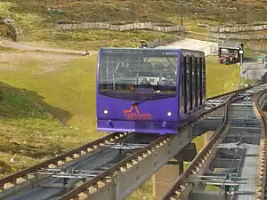 - 🌍 Cairngorm Mountain base is the end of the road and bus route from Aviemore, and base station for the mountain railway, reopened in 2023 after a five year shut-down. The car park costs £4 per day. The railway is a funicular, with the "up" car counterbalancing the "down" car. An adult return costs £22. Outside ski season, all you can do is ride up to Ptarmigan restaurant at the top station, admire the view and overpriced merchandise, then ride back down. You may not go out onto the hill - this is mainly to prevent damaging footfall on the Alpine habitat - or bring dogs. Hill walkers aiming for the heights must therefore trudge up the slope from the car park, but are permitted to ride down again.