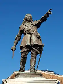 - π John Hampden statue, Market Square, Aylesbury (Opposite statue of Benjamin Disraeli (8m away)). Local lad turned great Parliamentarian leader during the English Civil War.