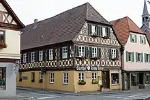- 🌍 Rathaus (town hall). built from 1684 to 1687 using the late medieval ground floor. It is a three-story Franconian half-timbered house.