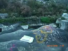 - π Vasudhara Falls (8 km northwest of Badrinath). The first 3 km can be travelled by a car or a bus. This stop is called "Mana". First point after the village Mana, the last habitat in the Indian side, is Bhim Pool. This is said to have been built by Bhim (of the Pandavas from the Mahabharata epic) for his wife Draupadi who could not cross the ridge. From here, there is a 4 km trek to the falls. No special gear for the trek is needed apart from some sturdy shoes.