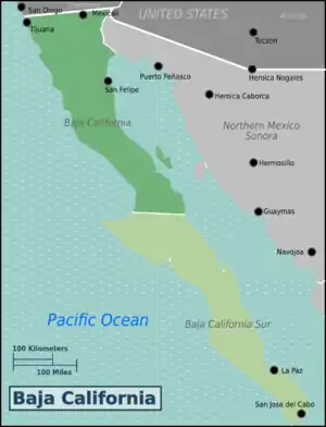 | Baja California (state) The northern state, bordering Sonora and the United States |