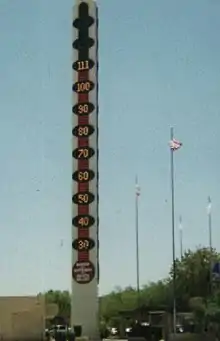 - 🌍 The World's Tallest Thermometer. Relax, it's not a giant tube filled with mercury, but a tower displaying a digital readout. The thermometer is 134 feet (40 m) tall, one foot for each degree of the North American record temperature of 134°F (57C). Easily viewed from the highway, a stop into town is not necessary.