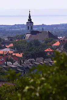 A resort village 10 km east of Balatonfüred, an old settlement at the foot of Somlyó Hill.
