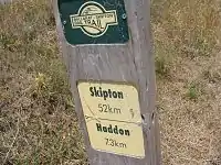 - 🌍 Pittong to 🌍 Skipton (10.6km). The trail follows closer to the road, and the landscape tends back towards the agricultural. At the end of the trail Skipton has a general store, a pub, toilets and water.
