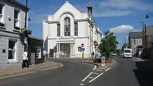 Ballymoney is a town historically in County Antrim in Northern Ireland; those counties have been abolished and it's now part of Causeway Coast and Glens District. Baile Monaidh means "homestead on the peatland" and it was a small agricultural town along the Belfast-Coleraine road, now A26. In the late 20th century it burgeoned into a commuter town and in 2011 the population was 10,402.