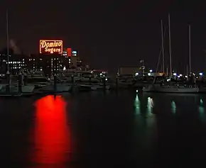 For being smack-dab in the middle of the one of most historic cities in the U.S., the Inner Harbor itself is oddly devoid of history. However, the one exception to that rule is a big one indeed: Fort McHenry, which lies across the harbor at the tip of Locust Point. It gained an iconic status in American history by successfully defending the Baltimore harbor from the British naval bombardment in the War of 1812, at which time Francis Scott Key was inspired by the tattered but still waving American flag on the fort to write the poem that would later become the national anthem, the "Star-Spangled Banner".