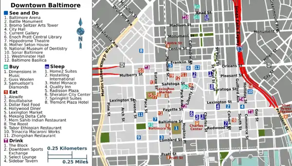 Downtown is nothing if not easy to get to, being just north of the Inner Harbor, off I-395, and on all major public transportation routes.