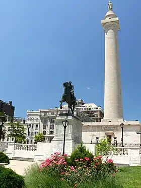 - π Washington Monument, Intersection of Monument Pl and Mt Vernon Pl (four blocks east of Centre St light rail stop). Th 4PM-9PM, F-Su noon-5PM. At the turn of the 19th century, Baltimorians lobbied for a monument dedicated to the United States' first president, and in 1829 Washington's first monument finished construction. It was designed by architect Robert Mills who later designed that other Washington Monument in D.C. It is now the focal point of the Mt. Vernon neighborhood. Visitors can climb to the top (more than 160 feet high) with admission to see a panoramic view of the city. $5.