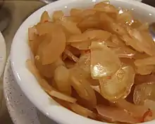 - Kue manto, fish roll doused with thick coconut milk and sprinkled with celery and fried shallot.