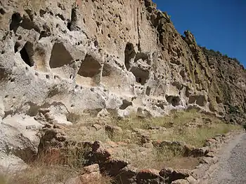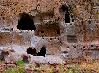 Bandelier National Monument is a national monument in the state of New Mexico near Los Alamos. It was once inhabited by the ancient Puebloans (incorrectly known as the Anasazi), the ancestors of some of the modern-day Native American pueblos of northern New Mexico. For some unknown reason probably related to drought and decline in agriculture, the Puebloans abandoned this site, but the area is still honored by the present-day Pueblo people. They left behind a land of enigmatic ruins and superb canyon/mesa scenery that beckons the hiker, student and photographer.