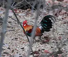 The vegetation along streams and morasses is rich in bird life, and include the oddly named "changeable hawk eagle" and storks. more common ones are little grebe, egret, lesser teal, white-eyed buzzard, black kite, crested serpent eagles, black vulture, Egyptian vulture, common peafowl, red jungle fowl, dove, parakeet, kingfisher, Indian roller, and the Indian national bird, the Indian peacock.