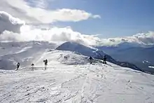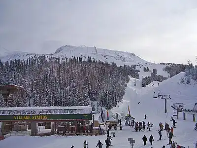 - 🌍 Sunshine Village, End of Sunshine Road, ☏ +1 403-705-4000, toll-free: +1-877-542-2633. 20 minutes west of the Banff townsite. It also receives more snow than the other two resorts and benefits from a higher elevation and a generally longer ski season. All natural snow, no snow-making. Also fantastic scenery. It is the only resort of the three to have on-hill accommodation. Buffet breakfast served in the lodge at the bottom of the gondola - not much else until lunchtime once you get to the top. $85 full-day adult ticket.