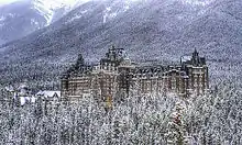 - 🌍 Banff Springs Hotel National Historic Site (Fairmont Banff Springs Hotel), 405 Spray Ave, ☏ +1 403-762-2211, toll-free: +1-866-540-4406, banffsprings@fairmont.com. The Banff Springs Hotel is a working hotel, and a recognized national historic site. The oldest part of the famous "Castle in the Rockies" was built between 1911 and 1914 using local Rundle stone (dark limestone) on the exterior, while the interior is that of a grand hotel. Fossils can be seen in the stone flooring. Visitors are welcome to see the public parts of the hotel, while guided tours may be available to show you some of the closed areas. Free to visit.
