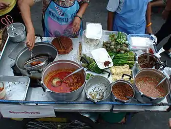 - 🌍 Saffron, 86 Phra Athit Rd (take a right from Soi Chana Songkhram, opposite the FAO office), ☏ +66 2 281-4228. 08:00-21:00 daily. European-style interior with all the typical Thai dishes. It's also a bakery, and their pies are just waiting to be eaten (try the carrot cake!). Just be warned that many of their dishes and drinks are low-fat and low-sugar, so Thai tea doesn't taste that good. Their menus are loved by vegetarians. 100 baht.