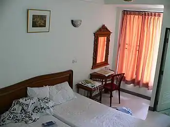 - 🌍 Rambuttri Village Inn (รามบุตรี วิลเลจ อินน์), 95 Soi Rambuttri (in the middle of Soi Rambuttri), ☏ +66 2 282-9162. Quiet series of uninspired buildings with small rooms, its main draw is its relaxing rooftop swimming pool. However, their website neglects to mention that it shuts down at 18:00 despite alluring photographs suggesting otherwise. Its rooms range from basic fan rooms to "deluxe" air-conditioned rooms. Biggest issue is the staff. If you have a problem, neither staff nor management will care about complaints nor will they offer refunds or compensation, even if it is the hotel's fault. They require a 1,000-baht refundable key deposit that can only be paid in cash (Thai baht only). If you cannot produce the deposit, they will not let you in your room even if you have already paid for it beforehand. There is no communal area. Free Wi-Fi. 700-1500 baht.
