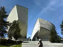 - 🌍 Slovak National Uprising Memorial, Kapitulská 23. Museum of items and documents of the resistance in the Second World War. Wide stairs lead to a pious chamber with the symbolic grave of an unknown soldier, eternal fire and soil from the battlefields and burnt villages, tables dedicated to Holocaust victims and international involvement in the uprising. The museum is characteristic with its notable Soviet-era architecture. The full fare is €2, with various discounts.