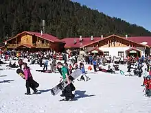 Most hotels offer a bus service to the ski lift station in the morning and afternoon. Try to get to the lift station not later than 09:00 to avoid long queues. It is also advisable to buy the tickets from the previous afternoon for the same reason. There are also minibuses to ferry people up the mountain in the morning which is included in the lift pass.