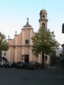 - Church of San Giovanni Battista. The church's foundation time is believed to be the 16th century. It was consecrated in 1589, and was subjected in the following centuries to various restoration and reconstruction interventions. The bell tower was also rebuilt in 1830. The façade is in good perspective on one side of the town's main square. Six trabeated pilasters divide and enliven the lower part of the facade. As many pilasters branch off from the string course to reach the upper part with a salient undulation that ends from the sides in the central hut-like part, supporting a statue, as well as each of the two pairs of lateral pilasters. The building has a north-south orientation. The side elevations are in exposed stones, as well as the bell tower behind the apse. The belfry has round arch openings with trabeated pilasters. The interior has a single nave with three chapels.
