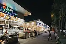 There are many malls in Batam offering a variety of stores and restaurants. Nagoya Hill Mall, in Nagoya, has a Matahari department store, Hypermart supermarket, ACE Hardware, and a Cinema 21. Restaurants include J.Co, KFC, A&W, BFC, Pizza Hut, Ayam Goreng Fatmawati, Solaria, Grandduck Chinese restaurant & newtown coffee at the top of the mall.