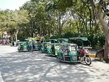 Within the city proper, it is possible to get around by tricycle, which have terminals scattered at important spots within the poblacion. Tricycles are coded by color and number, and they prowl Batangas City's inner streets not served by the extensive jeepney route network. Fares start at β±8 (as of 2019) for the first 2 km (1.2 mi), increasing by β±4 for each additional kilometer. Watch out for scams, especially for trips from the downtown to Pallocan (and vice versa) at night, when jeepneys are less frequent once the malls close.