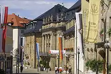- 🌍 New Palace (Neues Schloss), Ludwigstr. 21, ☏ +49 9 21 7 59 69 0, sgvbayreuth@bsv.bayern.de. Apr-Sep: Tu-Su 09:00-18:00; Oct-Mar: Tu-Su 10:00-16:00. The new residence of the Margrave Friedrich and his wife Wilhelmine after their old residence burnt down. It was designed and built by the French builder Joseph Saint-Pierre, and completed in 1754. The entrance fee includes entrance to the two museums inside as well as the State Gallery. Rooms of interest include the Garden Rooms, Cedar Room, Old Music Room, and the Cabinet of Fragmented Mirrors (designed by Wilhelmine herself). €5.50.
