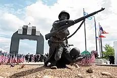 - 🌍 National D-Day Memorial, 3 Overlord Circle (5- to 10-minute drive or 30-minute walk to town center; 30- to 40-minute drive to Lynchburg and Roanoke.), ☏ +1 540 586-3329. Open everyday, 10AM to 5PM. The National D-Day Memorial is the official national D-Day war memorial, opened on June 6, 2001 with then-president George W. Bush present alongside 15,000 other people. It states that the memorial's purpose is "In Tribute to the valor, fidelity and sacrifice of Allied Forces on D-Day, June 6, 1944", honoring the 4,414 Allied soldiers who died in the invasion out of 150,000 servicemen from 12 countries. Overlord Arch is the signature feature of the monument with flags of the Allies overlooking incredibly detailed sculptures of soldiers in a pond. Many times through the year, events ranging from reenactments of the war to a religious mass are held throughout the year.