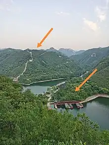 - Xiangshui Lake, Dazhenyu Village, Bohai Township, Huairou District. The hiking trail is a circuit and goes past partially restored segments of the Great Wall. There is a break in the Great Wall for what was once the Moshikou Pass, which was a strategic gateway. The pass was replaced by a dam constructed in the 1970s. A highlight of the Xiangshui Lake section is a segment of the wall running along a ridge that leads to the top of a cliff overlooking the gap that was the Moshikou Pass. Appropriately the segment is called the Lianyunling Great Wall, meaning “a ridge linked to the sky". It's not possible to climb the wall to the peak but from below the remnants of the wall structure looks like a shadowy mountain hideout. The underwhelming Xiangshui Lake Great Wall Plum Blossom Exhibition in early spring draws big crowds.